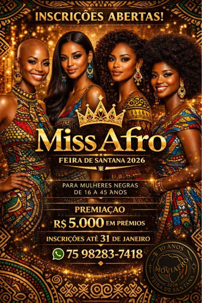 Capa Inscrições abertas para a 9ª edição do Concurso Miss Afro Feira de Santana 2026 Amaury Junior 26 de janeiro de 2026