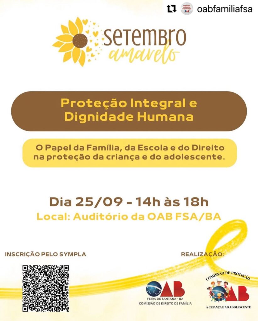 Destaques Setembro Amarelo: Comissão de Direito das Famílias da OAB Feira realiza palestra voltada ao tema Amaury Junior 19 de setembro de 2025