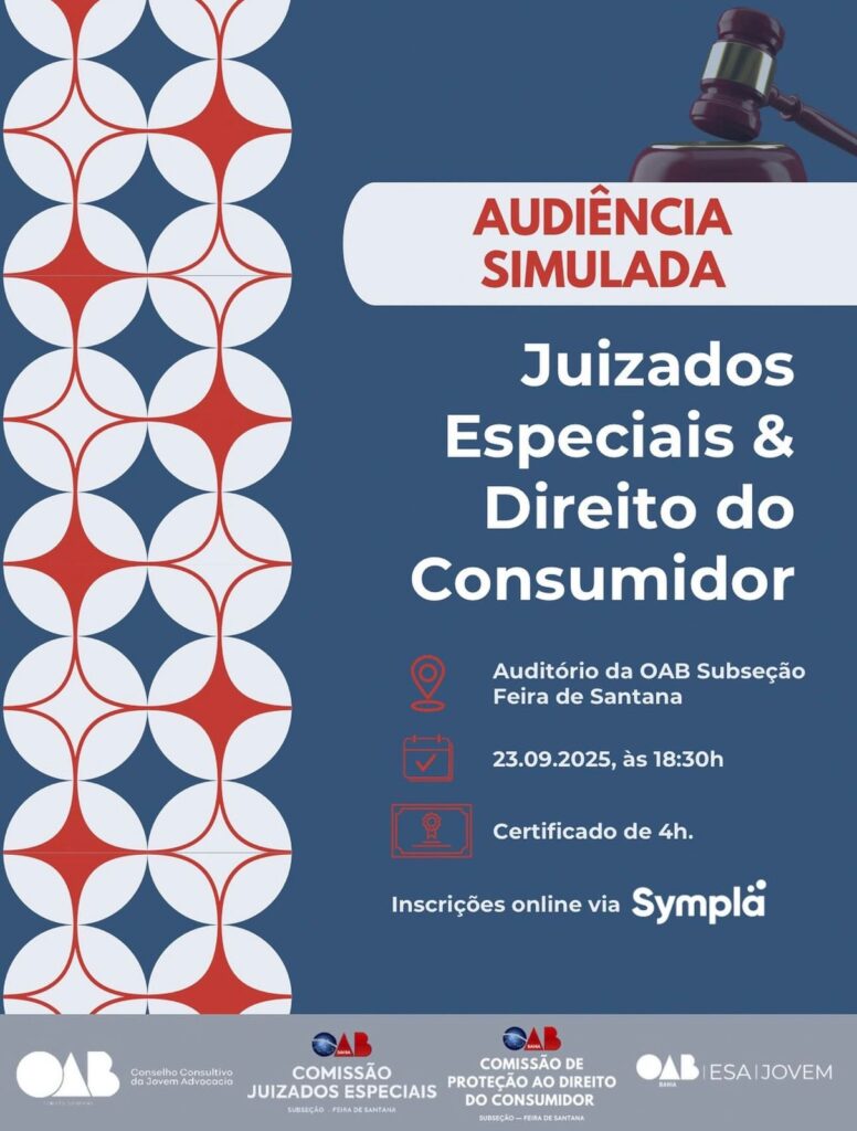Capa OAB Feira sediará audiência simulada nas áreas de Juizados Especiais e Direito do Consumidor Amaury Junior 22 de setembro de 2025
