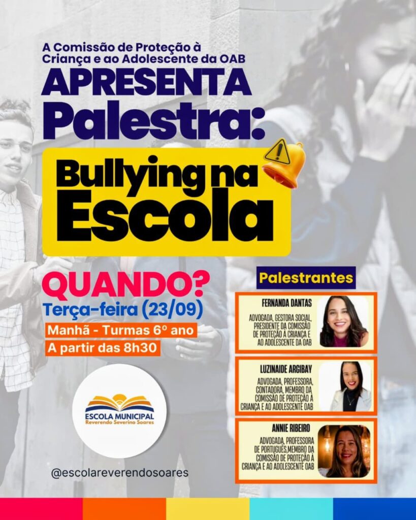 Destaques Comissão de Proteção à Criança e ao Adolescente da OAB Feira realiza mais uma palestra sobre bullying na escola Amaury Junior 22 de setembro de 2025
